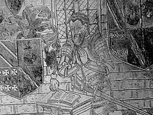 On either side are two escutcheons. That on the dexter shows the arms of Fortescue in the first quarter with three other quarterings. The escutcheon is surmounted by a crest, apparently a plain shield, in Latin scutum, alluding to the Latinized family name de Forti Scuto[4] meaning "(from) a strong shield". In the 2nd quarter are the arms of Denzil (or Denshill): Sable a crescent with a mullet issuing from between its horns argent [see Sir George Carew's Scroll of Arms 1588 (1901): 93]. The arms in the 3rd quarter are the arms of Filleigh: Gules, a fess vairee between 6 crosses formee or.[5] In the 4th quarter are the arms of Walter Treawyn of Weare Gifford, (d. 1381)[6] by marriage to whose daughter and heiress, according to Tristram Risdon, the Fortescues had acquired Weare Giffard: Argent, on a bend vert between six crosses crosslet fitchee gules three crozier heads or.