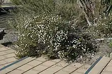 Ricinocarpos bowmanii, commonly known as western wedding bush or Bowman jasmine,[2] is a species of flowering plant in the family Euphorbiaceae and is endemic to New South Wales. It is usually a monoecious shrub with linear to oblong leaves and three to six male flowers around each female flower.