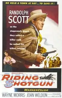 Riding Shotgun is a 1954 American western film directed by Andre de Toth and starring Randolph Scott, Wayne Morris and Joan Weldon. The film was based on the short story "Riding Solo" by Kenneth Perkins, originally published in the September 1942 issue of Blue Book. The production is unusual in that Scott narrates his inner thoughts at crucial moments in the action.