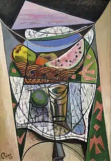 In 1958 during a conflict called the West New Guinea dispute Sukarno severed all ties with The Netherlands because the Dutch refused to hand over Papua New Guinea to Indonesia.[13] The Dutch in Indonesia were given a choice: take Indonesian citizenship or leave the country.[14] Ries Mulder decided to return to The Netherlands in 1959, much to the chagrin of his students. From 1959, Ries Mulder lived with his three sisters in the house at Achtersloot in IJsselstein. It was difficult for him to return to Holland. He made many trips to the Dordogne, Spain and North Africa. His later works consist mainly of cityscapes in soft pastel colors, built on geometric planes and separated from each other by black contours. Ries Mulder died in 1973 in IJsselstein. After his death, a retrospective of his work was held in 1994 at the IJsselstein City Museum. In 2009 several of his paintings and personal belongings were exhibited at the exhibition "Beyond the Dutch: Indonesia, The Netherlands And The Visual Arts From 1900 To Present" at the Central Museum in Utrecht.[15]