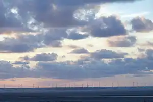Riffgat (also known as Borkum Riffgat and OWP Riffgat) is an offshore wind farm 15 kilometres (9.3 mi) to the north-west of the German island of Borkum and north of the eponymous shipping channel in the southern North Sea. The wind turbines are built across an area of 6 square kilometres (2.3 sq mi). It consists of 30 turbines with a total capacity of 108 megawatt (MW),[1] and is expected to generate enough electricity for 112,000 households.[2][3]