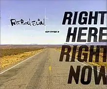 "Right Here, Right Now" is a song by British big beat musician Fatboy Slim, released on 19 April 1999 as the fourth single from his second studio album, You've Come a Long Way, Baby (1998). The song samples "Ashes, the Rain & I" by James Gang and an Angela Bassett quote from American science fiction thriller film Strange Days (1995). "Right Here, Right Now" reached number two on the UK Singles Chart and became a top-40 hit in Australia, Greece, Iceland, Ireland, New Zealand, and the Walloon region of Belgium. It was voted by Mixmag readers as the 10th-greatest dance record of all time.[2]