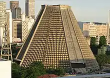 The cathedral was designed by Edgar de Oliveira da Fonseca in a modern style based on Mayan architectural style of pyramids.[1] The current cathedral was built between 1964 and 1979 and replaced as seat of the Archdiocese a series of churches that had served as cathedrals since 1676, the most recent and notable of those being the Church of Our Lady of Mount Carmel of the Ancient See, now known as the Old Cathedral, built in the 18th century, and that had been declared Rio's cathedral in the early 19th century.
