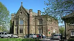 In the mid-19th century the lord of the manor, Sir William Amcotts-Ingilby, developed a plan to redevelop Ripley in the style of an Alsatian village; the final building in his plan was the town hall which he wanted to resemble a French "Hôtel de Ville".[2] The new building was designed in the Gothic Revival style, built in ashlar stone and was completed in late 1854.[1]