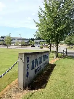River Ridge and its feeder school, Nisqually Middle School, serves many students with parents who are on active duty or have retired from the military due to its proximity to Joint Base Lewis-McChord.[3] River Ridge was constructed as a community solution to handle the over-flowing capacities of neighboring Timberline and North Thurston High Schools in the late 1980s-early 1990s, producing a more diverse student body population than the other two high schools in the district.[4]