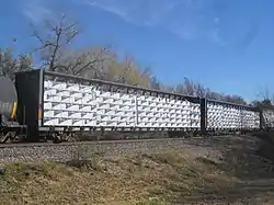 ![]() Centerbeam flatcar from the Riverport Railroad on a freight train in Norman, Oklahoma | |