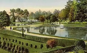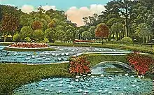 Manicured grounds and ponds in Riverside Park ca. 1913
