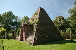 There is a pyramid-shaped tomb here, built in 1780 during the German-Prussian era when the village was called Ober-Rosen. It was designed by Carl Gotthard Langhans (who also designed the Brandenburg Gate) and housed the tombs of Prussian general Karl Adolf August von Eben und Brunnen and his closest relatives.