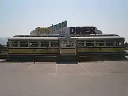 After construction, it was displayed on exhibition at the 1939 World's Fair in New York.[2] After the Fair, It was sold to Al McDermott who had it towed it to Fall River, Massachusetts, where it operated for 14 years. In 1953, it was sold to Greek immigrant Tommy Borodemos, who had it transported down the turnpike to Middletown, Rhode Island, where it operated for 4 generations as Tommy's Deluxe Diner.[3] It closed in May 2006 and was purchased in 2007 by Utah businessman, Keith Walker, who transported it to Oakley, Utah.[4] After a year of restoration, it was opened in July 2008. It is said to be the only pre-war, Art-deco streamline (constructed to mimic a rail dining car) diner west of the Mississippi River.
