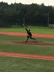 ![]() Cordemans pitching in a September 17 2017 playoff game, HCAW - L&D Pirates | |