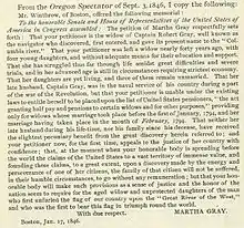 On November 21, 1800, Gray left Boston in command of the schooner James, with a cargo of iron and stone ballast, bound for Rio de Janeiro, where he arrived on April 18, 1801.[34] He also made subsequent voyages to England and the southern United States.[2] Gray died at sea in 1806, near Charleston, South Carolina.[1] The cause of his death is believed to have been yellow fever.[2] He left behind his wife and four daughters, who later petitioned the U.S. Congress for a government pension, based on his voyages and a claim that he was a naval officer for the Continental Navy during the Revolutionary War.[1]