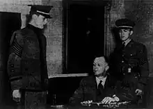 Patterson (left) as first captain of the corps of cadets at John Marshall High School, meeting Governor Colgate Darden in 1943
