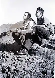 In Yosemite, Brinton and Bill Rice made the second ascent of Royal Arches (class 5.9) and Lower Cathedral Spire in May 1937 (and again in 1941).[25] A climb up the North Palisade in July 1938 led to the rescue of three climbers who were unroped and inadequately equipped; after roping the climbers and assisting them to the top, the group spent an unanticipated and cold night on the mountain.[26]