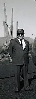 In 1962 he earned the additional moniker "Desert Fox" for his design of the Desert Forest Golf Club, the world's first course built entirely in the desert.[1] At Desert Forest, the Championship Golf Course at the University of New Mexico, and other courses, he is known for building a course using the natural terrain of the area and including the original aspects of the region in the design.[4][5] In 1974 Lawrence designed an 18-hole addition to The Wigwam golf club, a course that was eventually named the "Red" course in honor of his long-term nickname.[6] His golf courses at the Tubac Golf Resort & Spa were featured in the 1996 Kevin Costner film Tin Cup.[7] Lawrence died in Tucson on July 27, 1976, at the age of 83, and inducted into the Arizona Golf Hall of Fame posthumously in 2003.[1][2]