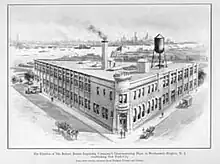 Reiner began training to be a machinist at age 15 (about 1895) at Heller Brothers in Nürtingen, Germany.[1] He then went to work with Adolf Saurer in Arbon, Switzerland. Saurer was producing both hand machines and schiffli machines at this time.[4] About 1900 he went to work for VOMAG in Plauen, Germany as an erector's assistant. He was 20 years old. In 1902 he traveled to Weehawken to set up VOMAG machines at E.A. Bodenmann, then returned to Switzerland and Austria until 1903. In 1904 he returned to the US and started a machine repair shop at 449 West Street, West Hoboken. In 1908 he founded and was president of Robert Reiner Importing Company. In 1909 he built the 25,000 square foot, concrete building, at 550 Gregory Ave, Weehawken which still stands and has been converted to housing. Business expanded after World War I and eventually became Robert Reiner Inc.