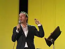 Benigni became widely known in Italy in the 1970s for a television series called Onda Libera, on RAI2, produced by Renzo Arbore, in which he interpreted the satirical piece The Hymn of the Body Purged (L'inno del corpo sciolto, a scatological song about the joys of defecation).[7] A great scandal for the time, the series was suspended due to censorship.[8] His first film was 1977's Berlinguer, I Love You (Berlinguer ti voglio bene), also by Bertolucci.