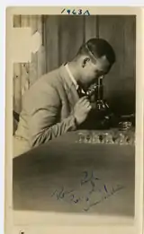 At Columbia, Rugh joined the Radiological Research Laboratory, College of Physicians and Surgeons. Here, he served as a Professor of Radiology (1948-1971) in addition to directing research on the effects of ionizing radiation (1948-1971) and serving as a senior medical consultant and lecturer (1971-1978).[5][6][7][8][9] Rugh devoted many of his research pursuits in the field of embryology and published many papers and wrote several books on this topic.[10][11][12][13][14][15][16][17][18][19][20][21][22][23][24][25] Photograph shows Rugh at work.[26]