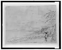 Ink drawing by William Berryman titled "On the Rockfort Road" from 1808