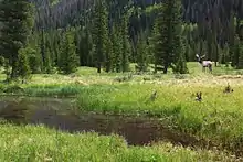 This article incorporates public domain material from "Montane Ecosystem". Rocky Mountain National Park. National Park Service. Retrieved November 1, 2016. - ↑ "Watching Wildlife - Horseshoe Park". Rocky Mountain National Park. Archived from the original on April 28, 2021. Retrieved November 1, 2016.