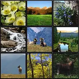 This article incorporates public domain material from "Majestic view from the old, one-way, dirt Fall River Road in Rocky Mountain National Park in the Front Range of the spectacular and high Rockies in north-central Colorado". Library of Congress - Prints & Photographs Online Catalog. Library of Congress. Retrieved October 28, 2016. - ↑ "Ecosystems of Rocky Teacher Guide" (PDF). Rocky Mountain National Park. p. 4. Retrieved November 3, 2016.