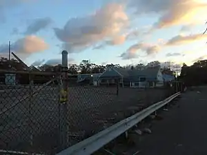 The line east of Port Jefferson, which included the Rocky Point station, was abandoned in 1938, and the station house was moved a short distance became a lumber yard which survived into the 21st Century.[3] The right-of-way is now owned by the Long Island Power Authority and used for power lines, but there are plans to create a rail trail for bicycling, running, and walking.[4] The Thurber Lumber Yard no longer exists.[5] After the lumber yard closed, the property was rezoned to permit multifamily development. The developer plans to construct senior citizen apartments and renovate the former station house, turning it over to Rocky Point's civic association for use as a Veterans of Foreign Wars (VFW) museum.[6][7]
