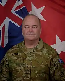 Noble was seconded to the United States Army in 2016 and deployed with the 101st Airborne Division as Deputy Coalition Land Force Commander, Iraq, as part of Operation Inherent Resolve.[2][12] In this post, Noble was subordinate to Major General Gary J. Volesky and effectively second-in-command of Coalition forces supporting the Iraqi Army in the war against the Islamic State. In an interview with ABC News, Noble expressed confidence that the war against the Islamic State was being won but, remarking on the conduct of warfare in Iraq, conceded that "it's complicated" and that there was "a lot of conventional direct ground combat with high casualties and high risk".[12] He was promoted major general in November 2016 and,[13] the following March, succeeded fellow Australian, Major General Greg Bilton, as Deputy Commanding General – North of the United States Army Pacific in Hawaii.[14] After almost two years, Noble relinquished the command to Major General Daniel McDaniel in January 2019.[15] He was subsequently appointed Deputy Chief of Joint Operations in Headquarters Joint Operations Command. Noble swapped positions with Rear Admiral Jaimie Hatcher in September 2019, becoming Head Military Strategic Commitments within the Vice Chief of Defence Force Group.[16] In this role Noble was responsible for the strategic management of potential and present commitments for the Australian Defence Force.[17]