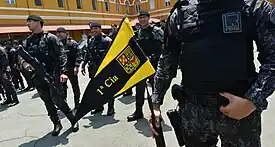 The 1st Shock Police Battalion of the São Paulo Military Police, also known as Rondas Ostensivas Tobias de Aguiar (Portuguese for Tobias de Aguiar Ostensive Patrols) is a tactical police unit, mostly known by its acronym ROTA (also Portuguese for route). Focusing on flexibility and quick reaction, its responsibilities include heavily armed motorized patrols, as well as deployment in the event of civil unrest to restore public order and counter-insurgency operations.[3][4]