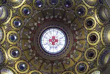 The exterior of the dome is surmounted by a dramatic gilded crown and cross, which were a gift from the People of Ireland in 1924. The cross was regilded in 2000-2.