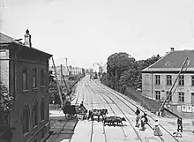 When Copenhagen's second central station was located at Axeltorv, the westbound trains crossed The Lakes on the embankment where Gyldenløvevej runs today and followed what is now Rosenørns Allé to present-day Julius Thomsens Plads where it split into a northbound and a westbound line.[2]