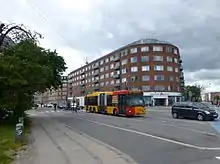 The Functionalist apartment building Trekanten ("The Triangle")on the rounded corner of Rosenørns Allé with Åboulevard was designed by Kay Fisker.[5] In collaboration with C. F. Møller,
