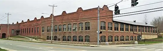 The Rossie Velvet Mill Historic District is located in the village of Mystic in Stonington, Connecticut. Its main focus is the former Rossie Velvet Mill, a large brick industrial facility on the east side of Greenmanville Avenue that is now a research center for the nearby Mystic Seaport Museum. The district extends along Greenmanville Avenue between Pleasant Street in the north and the museum complex in the south. Most of the buildings in the district are residential housing built to house workers at the mill, and were built between about 1850 and 1950. The district includes 51 properties in 120 acres (49 ha).[2] The district was listed on the National Register of Historic Places on March 9, 2007.[1]