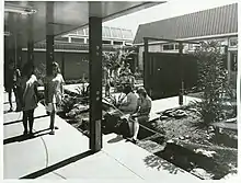 Much of the school is built in the "S68" style common for school buildings built in the period 1968 to 1978, featuring single-storey blocks of rooms with cinderblock concrete construction, low-pitched roofs and internal courtyards.[4]