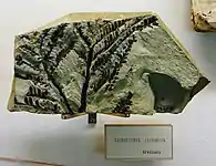 Affinities with Araucariaceae or Cheirolepidiaceae inside Coniferales. Brachyphyllum tropidimorphyrn shows close resemblance between African and Venetian conifers and its distribution suggests a lowland araucarian forest.[59] |