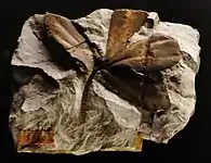 An oyster, member of Plicatostylidae inside Ostreida. On the Rotzo formation this genus become abundant along rootlets, indicative of a very shallow and restricted lagoon or marsh environment.[17] |