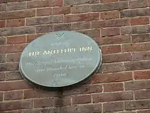 Blue plaque on the front of the building