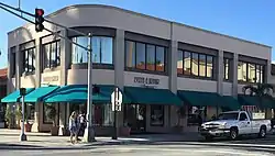 - The Exchange Building at 100 North County Road.[1]: 36 Initially designed by architect Bruce Kitchell in 1924, the Exchange Building was originally a two-story Mediterranean Revival architectural-type structure and had an arcade on the first floor. However, John Volk significantly redesigned the building in 1941, transforming its architectural style to Art Moderne.[1]: 13