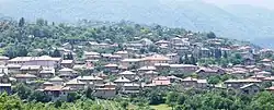 Rozovski vriz, 7 kilometres away from Rozovo, is a villa resort, established in 1972. It has 112 houses and a capacity up to 1000 people. It is 1200 m above sea level. It is split into Buk mahalla and the centre. According to an old custom, on the third Sunday of July, the traditional gathering of the village of Rozovo - the Feast of the Rozovo Strawberry, is held at the Rozovski vriz summer resort.[2] The locality takes its name from the fact that many waters spring and collect there, leading to a micro-dam called Gyuvecha. The place is popular for recreation in summer and winter because of its unspoilt nature and crystal clear water and air. The lake can be used for fishing, and there is also a fountain and a gazebo with picnic and barbecue facilities.[3]