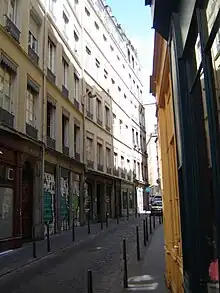 At the time, the street provided access to two major climbs to leave Lyon to the north, the montée de la Grande Côte and the montée des Carmélites. There were two monasteries located in the street: the Benedictines of the Desert since 1296, and the Grands Augustins between 1319 and 1509, but these monasteries have moved.[1] The Confraternity of Penitents of the Holy Crucifix was installed in the street in 1633, and, during the Ancien Régime, was the owner of the chapel rebuilt in 1643[4] which was demolished during the Reign of Terror and replaced by a house that currently overlooks the montée de la Grande Côte.[2]