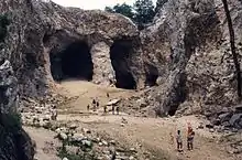 Ruggles Mine is an open-pit mine that was turned into a tourist attraction but is now closed and was recently sold.[1] The mine is located 40 miles (64 km) northwest of Concord, New Hampshire, in the town of Grafton, a short distance from Route 4 at the village green. The spacious pit includes tunnels and underground chambers, some of which are filled with water. Visitors were allowed to keep any of the various minerals that were found on the mine floor or that could be hammered loose from the walls of the pit.[2][3]