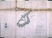 During the history of the spice trade, sailors of the English East India Company of the second expedition of James Lancaster, John Davis, Sir Henry Middleton and his brother John who stayed in Bantam on Java, first reached the island in 1603 and developed good contacts with the inhabitants. A small settlement was first attempted on Pulau Nailakka. On December 25, 1616,[3] Captain Nathaniel Courthope and 1st mate Zachary Barnett Duncan reached Run to defend it against the claims of the Dutch East India Company (VOC). A contract with the inhabitants was signed, accepting James I of England/James VI of Scotland as sovereign of the island. The Dutch were outraged over this threat to their monopoly on the extremely profitable spice trade. Courthope fortified the island by erecting forts to overlook approaches from the east, but lost two ships to mutiny and sinking by the Dutch, when they laid siege to the island. Courthope and 39 European defenders with their native allies held off the Dutch for 1540 days; however, after his death in a Dutch attack in 1620, the English departed the island.[4] Finally in possession of Run, the Dutch proceeded to kill or enslave all adult men, exile the women and children and chop down every nutmeg tree on the island to prevent the English from retaking it. The VOC only allowed cattle to roam free on Run to provide food for the other islands.[5] It was not until 1638 that the English tried to access Run again, after which VOC officials annually visited the island to check if they had secretly re-established themselves.