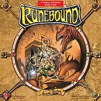 Runebound is a high fantasy adventure board game created by Martin Wallace and Darrel Hardy and published by Fantasy Flight Games in 2004. A second edition was published in 2005. A third edition was released in 2015. In Runebound, one to six players take the roles of adventurers who seek out quests (indicated by markers on the map). The quests are then resolved with either victory for the player, or a loss of some item. Each player is seeking quests and trying to gain experience which results in greater power and combat skill.