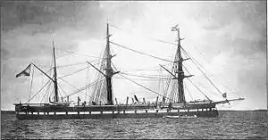 The Russian ironclad Petropavlovsk (Russian: Петропавловск) was a 22-gun armored frigate in the Imperial Russian Navy during the late 19th century. She was originally ordered as a 58-gun wooden frigate, but she was reordered as an ironclad while under construction and subsequently converted into one. She served as the flagship of the Baltic Fleet during the 1860s and 1870s. The ship was decommissioned in 1885, but was not sold for scrap until 1892.