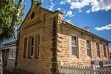 Early buildings were constructed of timber slabs and stringy bark, later wattle and daub became common. Plentiful sandstone in the area led to significant buildings being constructed of that material.[2]