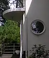 While traditional villas and cottages still dominated house production in the early 1930s, a few exclusive villas were built in the new Functionalist style, inspired by the showcases at the Stockholm International Exhibition 1930. One of the earliest examples is the villa architect Sven Markelius, one of the leader of the exhibition, had built for himself at Nockeby 1930–31. Its strict geometry, its bright plaster façades, and its elevated location with nature left untouched around the building makes it characteristic of villas in Bromma.[1]
