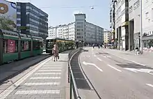 The Sörnäinen curve (Finnish: Sörnäisten kurvi, Swedish: Sörnäskurvan), also known as Sörkän kurvi or just Kurvi, is an area in the eastern part of the Helsinki city proper in Finland, at the intersection point of the neighbourhoods of Sörnäinen, Kallio and Alppiharju. The area is located around the point where the street Hämeentie curves to the right going north and the street Helsinginkatu branches off it to the west. The curve area covers the whole area on the intersection of Helsinginkatu and Hämeentie. The curve serves as a hub for many public transport connections, including the Sörnäinen metro station. One of the former landmarks of the curve was the building of the insurance company Kansa and the light tower located on top of it.