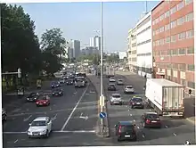 Earlier, Sörnäisten rantatie was mostly an interior street in the industrial and harbour area, with a railway track branching off from the Sörnäinen harbour rail to the Hakaniemi market square running along it.[3] It was started to expand to a larger traffic road in the early 1950s when the new Kulosaari Bridge was being constructed. The Hakaniemi bridge was completed in 1961, connecting Sörnäisten rantatie to Pohjoisranta in Kruununhaka and onwards to the South Harbour. As traffic originally went via Hakaniemenranta to the Pitkäsilta bridge, the Hakaniemenranta street remains a four-lane street to this day, even though the traffic does not support this any more.