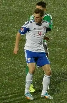 Sølvi Vatnhamar (born 5 May 1986)[2] is a Faroese footballer who plays as an attacking midfielder for Víkingur and the Faroe Islands national football team.[3] He also works as a constructor next to his football career.[4]