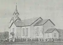 In 1873, it was decided to build a new and larger church, but there wasn't room on the current church site. A new plot of land about 225 metres (738 ft) north of the old church site was bought from Einar Ingebrigtsen Vik. The new church building was completed in 1876.[5] After the new church was completed, the old church was torn down and its materials were sold at auction in the village. The old cemetery (surrounding the old church) was used until 1980 when a new cemetery was opened.[4]