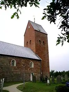 On the southern edge of the village the church of St. Lawrence is located, originally a roman style construction from the 12th century made of stone, which was later extended using bricks. These bricks dominate today's view of the church. In the 1990s, Renaissance paintings were uncovered on the church's ceiling. In the ample graveyard the tombs of Matthias Petersen and Oluf Braren can be seen among others.