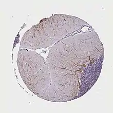 - ↑ Fagerberg L, Hallström BM, Oksvold P, Kampf C, Djureinovic D, Odeberg J, et al. (February 2014). "Analysis of the human tissue-specific expression by genome-wide integration of transcriptomics and antibody-based proteomics". Molecular & Cellular Proteomics. 13 (2): 397–406. doi:10.1074/mcp.M113.035600. PMC 3916642. PMID 24309898.